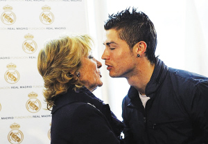 北京時(shí)間昨天是C羅的生日,他和皇馬主席弗洛倫蒂諾一起在伯納烏參加了一項(xiàng)新聞發(fā)布會;蜀R俱樂部與馬德里大區(qū)達(dá)成了合作協(xié)議,皇馬基金會將會投資幫助馬德里大區(qū)那些未成年人、外國移民等等。在新聞發(fā)布會現(xiàn)場,C羅和弗洛倫蒂諾開起了玩笑;蜀R主席問C羅“你現(xiàn)在多大了”,C羅回答“我20歲了”。弗洛倫蒂諾當(dāng)即揭穿了C羅的謊言:“你已經(jīng)25歲了,你竟然已經(jīng)這么老了!”當(dāng)然,這次玩笑以全場歡笑告終!∽鳛榛蜀R代表,C羅還與馬德里大區(qū)女主席阿吉雷進(jìn)行了親密接觸。盡管阿吉雷的年齡足以當(dāng)C羅的奶奶,但葡萄牙人還是跟她來了一個(gè)貼面熱吻。在被C羅熱吻之后,阿吉雷顯得非常高興,立刻說:“C羅是世界上最出色的球員,沒有之一。”同時(shí)阿吉雷也宣稱,“皇馬是歷史上最出色的足球俱樂部!
