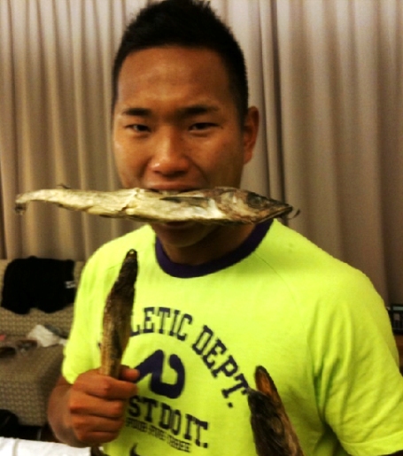 中新網(wǎng)6月19日電 在和巴西隊的比賽中表現(xiàn)出色的朝鮮國家隊隊員鄭大世在博客中上傳了“明太魚照片”,引起了人們的熱議。韓國《中央日報》報道稱,他在博客中公開了自己咬著明太魚的滑稽照片。他說:“明太魚是朝鮮國家隊隊員們喜歡的零食,我也很喜歡!