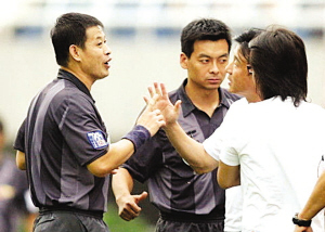 第17輪中超最后的兩場(chǎng)角逐昨天進(jìn)行,北京國安主場(chǎng)以3:0戰(zhàn)勝長(zhǎng)沙金德,陜西中新浐灞隊(duì)在主場(chǎng)1:2不敵山東魯能隊(duì)。陜西中新隊(duì)成耀東賽后情緒有些難以控制,他非常憤怒地暗指了對(duì)裁判的不滿。