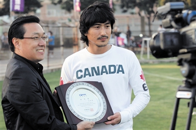 昨天下午,在大連隊訓(xùn)練時,來自韓國的KSB電視臺采訪組,一直在場邊拍攝安貞煥的訓(xùn)練畫面。訓(xùn)練結(jié)束后,他們邀請安貞煥做了一個訪談節(jié)目,介紹安貞煥在大連的足球生活。韓國鐵道部旗下的一家鐵路建筑公司,邀請安貞煥擔(dān)任他們的形象大使,采訪組代表在訓(xùn)練場邊向安貞煥贈送了“形象大使”的紀(jì)念獎杯。