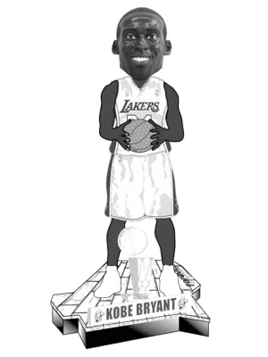“如果你在為不知道送一個湖人球迷什么禮物而煩惱,別想了,一個身高1米98的‘科比’怎么樣?”這樣的廣告語對任何一個湖人球迷都太有誘惑力了,而且這不是虛假廣告,湖人官網的網上商店正在發(fā)售——史上最大的搖頭娃娃紀念品,和真實的科比一樣高的搖頭娃娃。