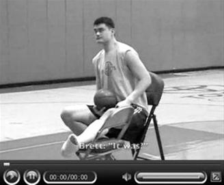 到達(dá)豐田中心之后,左腳打著石膏的姚明拄著拐杖坐上火箭的擺渡車,前往訓(xùn)練場。在訓(xùn)練場上,火箭隊(duì)球員主管布萊特·甘寧前來幫助姚明進(jìn)行投籃訓(xùn)練,而姚明坐在凳子上,打石膏的左腿架在椅子上,就以坐姿進(jìn)行投籃訓(xùn)練。