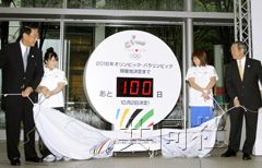 中新網(wǎng)6月25日電 據(jù)共同社報道,昨天距2016年夏季奧運會主辦城市揭曉還有100天,東京奧申委在東京國際論壇中心設(shè)置了一座顯示剩余天數(shù)的倒計時鐘。
