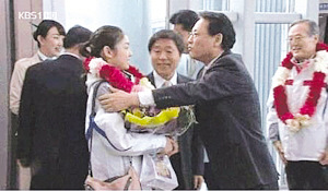 據(jù)悉,本月2日,溫哥華冬奧會韓國代表團回國之時,韓國文化部長柳仁存親自到仁川機場迎接。在此期間,KBS一直負(fù)責(zé)整個過程的錄制過程,柳仁存部長被拍到在給金妍兒佩戴花環(huán)時,曾試圖擁抱金妍兒,但金妍兒顯然對這一舉動比較介意,有意地向后退縮,但柳部長仍強行兩手抱住金妍兒,表情更是有些“猥瑣”。