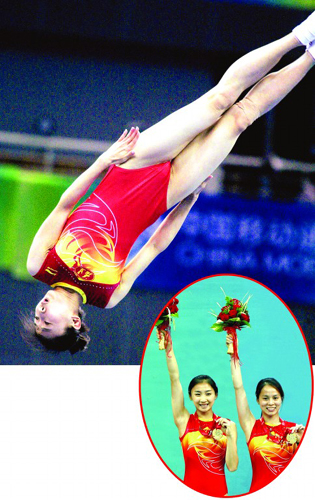 從決賽觀眾席幾乎滿員的情形就可得知,女團(tuán)決賽的賽場(chǎng)依然是何雯娜表現(xiàn)的舞臺(tái)。隨著播音員叫出“何雯娜”這個(gè)名字,整個(gè)賽場(chǎng)響起了熱烈的掌聲。對(duì)于預(yù)賽中的發(fā)揮欠佳,何雯娜曾表示,那是由于奧運(yùn)會(huì)之后沒(méi)有參加過(guò)什么大賽太過(guò)緊張所致,而經(jīng)過(guò)一天的調(diào)整,她顯然已經(jīng)克服了緊張情緒。決賽中的唯一一套動(dòng)作,何雯娜完成得如行云流水一般,既舒展又輕盈。最終,何雯娜的這套動(dòng)作贏來(lái)了38.80的高分。興奮地?fù)]了揮手,何雯娜滿意地下了網(wǎng)。而接下來(lái)老將黃珊汕的上場(chǎng)再次將福建隊(duì)與其他隊(duì)的差距拉大,結(jié)果,實(shí)力強(qiáng)大的福建隊(duì)毫無(wú)懸念地獲得了全運(yùn)會(huì)三連冠。