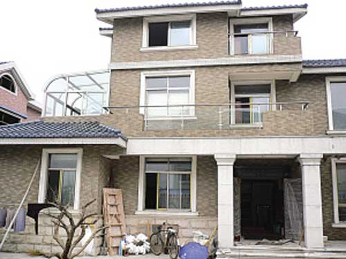 早就聽說丁俊暉家的豪宅要裝防彈玻璃,趕到現(xiàn)場記者第一時間找到了客廳的那扇大窗。據(jù)說,圖紙上原先預(yù)留的窗戶位置更大,全是落地窗,但考慮到安全因素,丁家還是決定把窗的位置往上抬了一點,但已非常可觀。記者走進(jìn)大窗仔細(xì)觀察了一番,玻璃確實很厚,“不是防彈的,因為窗子大,所以玻璃要厚一點,當(dāng)時是開玩笑說玻璃要厚到防彈才行,”照看屋子的沈大媽笑瞇瞇地告訴記者。