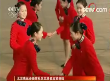 另據(jù)中央電視臺報道,練站姿,包括要穿五厘米的高跟鞋,頭上頂課本、膝蓋中間夾白紙,站上一個小時要求書和白紙都不能掉下來。她們美麗溫柔的笑容,也都是經(jīng)過標(biāo)準(zhǔn)化訓(xùn)練的。“笑要露六到八顆牙,一定要是發(fā)自內(nèi)心的微笑,”一位頒獎禮儀志愿者面對鏡頭如是說。