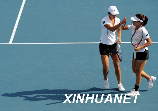 中新網(wǎng)1月22日電 據(jù)北京奧運會官方網(wǎng)站報道,在剛剛結(jié)束的2008澳大利亞網(wǎng)球公開賽女雙1/4決賽中,賽會7號種子中國黃金組合鄭潔/晏紫,在先失一盤的情況下上演翻盤大逆轉(zhuǎn),擊敗威廉姆斯姐妹挺進半決賽,三盤比分為:3-6,6-4,6-2。半決賽中鄭潔/晏紫將遭遇賽會12號種子跨國組合阿扎倫卡(白俄羅斯)/皮爾(以色列)。