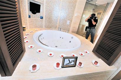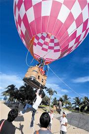 彩排中一個(gè)巨大的熱氣球無疑是最大焦點(diǎn),氣球上寫著“云中漫步”四個(gè)大字,待熱氣球緩緩升起,記者才看明白,原來是楊云和伴娘孫曉姣兩人將在空中來一趟“云中漫步”。具體過程是,楊云和孫曉姣在工作人員的幫助下,熱氣球從百米開外的一處小碼頭“漫步”到愛情廣場(chǎng)上空,等待楊威和國(guó)家體操隊(duì)的5名“黃金”伴郎的到來。