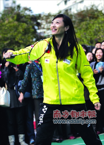 早上9時(shí)半,張寧與蔡赟、付海峰、韓晶娜便作為羽毛球世界冠軍代表出現(xiàn)在上海浦東社區(qū),參加“世界冠軍進(jìn)社區(qū)”的羽毛球推廣活動(dòng),還與社區(qū)代表打起了雙打?qū)官。活?dòng)結(jié)束不久,午后1時(shí)半,張寧已變換了身份,坐在中國(guó)隊(duì)女單組訓(xùn)練場(chǎng)邊的教練席上正式開(kāi)始了她第一天的工作。