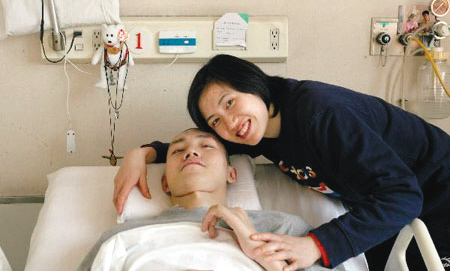 看到湯淼的情況一天比一天好,周蘇紅感到很知足,“湯淼能奇跡般地活下來,我已經(jīng)很感謝老天了。從人生的最低谷往上走,才會真正明白什么是知足!敝芴K紅說,做賢妻的日子讓她感到很幸福,自從和湯淼相愛,從來沒有在一起好好相守過,現(xiàn)在能24小時在一起,感覺很好。湯淼說,自己欠妻子很多,唯一的回報就是加緊康復(fù)訓(xùn)練,恢復(fù)生活自理的能力。雖然他清楚奇跡不會馬上到來,但他愿意用一生去努力。現(xiàn)在兩人常說的一句話是:“我的快樂取決于你,你快樂所以我快樂!