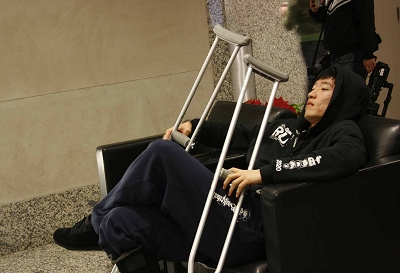 一襲黑衣,穿著鐵鞋,拄著鐵拐,劉翔在美國(guó)時(shí)間10日中午來(lái)到赫曼紀(jì)念醫(yī)院進(jìn)行首次復(fù)診。近一個(gè)小時(shí)的X光檢測(cè)和觀察,劉翔術(shù)后的情況也很直觀地反映了出來(lái)!盎謴(fù)非常理想,手術(shù)非常成功。”連續(xù)兩個(gè)“非!敝,師傅孫海平顯得相當(dāng)激動(dòng)。根據(jù)X光片顯示,劉翔跟腱部位與手術(shù)前相比非常光滑。此外劉翔開(kāi)刀的2.5厘米創(chuàng)口也愈合得很好?巳R頓醫(yī)生對(duì)此也很滿意。