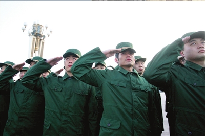 接受了4天的軍訓(xùn)后,國羽將士們昨天在天安門廣場展示了自己的訓(xùn)練成果——在寒風(fēng)中列隊(duì)觀看了升旗。