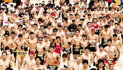 中新網(wǎng)1月5日電 據(jù)朝鮮日報(bào)中文網(wǎng)報(bào)道,4日上午,在韓國大邱舉行的“第2屆新年裸跑馬拉松大會”上,參與者們不顧寒冷的天氣,正在盡力向前進(jìn)。