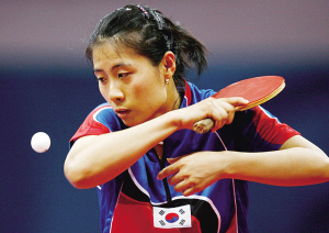 金暻娥是韓國著名女子乒乓球運(yùn)動員,現(xiàn)世界排名第9位,擅長正手反膠、反手長膠的削球打法。在不具備絕對實(shí)力和領(lǐng)先技術(shù)的情況下,金暻娥之所以能夠在國際乒壇立足,主要依靠的是自己頑強(qiáng)的意志和反手長膠“牛皮糖”般的削球。黃德強(qiáng)