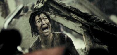 以唐山為題,觀眾自然也關(guān)注地震戲拍得怎么樣,就特技而言應(yīng)該說馮小剛交出了一篇不錯的答卷。影片開篇的唐山大地震場面拍得驚心動魄,3分鐘內(nèi),觀眾剛體會到四口之家的溫馨,馬上就見證了地獄般的滅城,地陷、屋塌和震后的哀鴻遍野,這段戲結(jié)合置景搭建和電腦特效,有小細(xì)節(jié)的真實質(zhì)感,也有大場面的壯觀殘酷,拿出來跟《2012》比都不算失禮。此段戲后,徐帆一句凄厲的“老天爺,你個王八蛋!”成為觀眾的首個情緒迸發(fā)點,場內(nèi)抽泣聲此起彼伏。