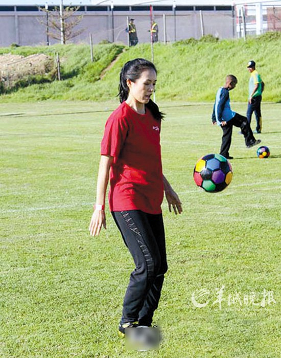 首次上球場章子怡跟中田英壽學(xué)傳球