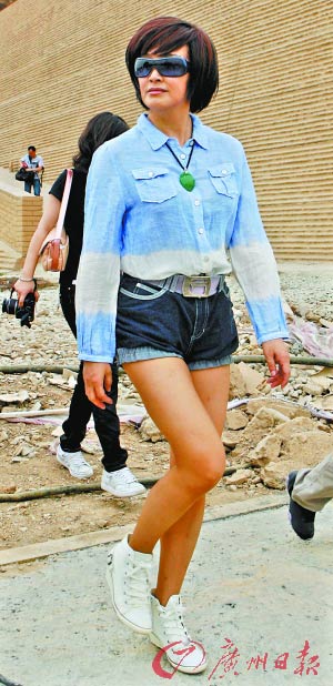 在將近三個小時的參觀過程中,劉曉慶也成為了乾陵一道風景線。當劉曉慶一身熱辣的運動裝出現(xiàn)在大家面前時,不少人都驚呼,“還是一副少女的感覺!彼倪\動裝配以黑色超短裙,半截黑絲襪做點綴,還是顯出了比較清純的氣息。對此,劉曉慶回答道:“我風格比較多,愛好也比較多,今天因為要走很多路,所以是這樣的裝扮。不知道今天會有媒體到場,不然我一定要好好打扮一番,不要素顏。”