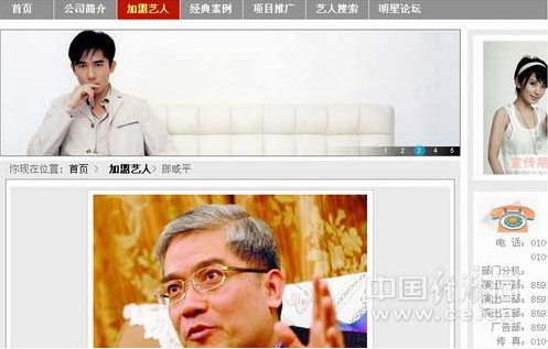 劉謙、梁朝偉、張曼玉、郎咸平這幾個(gè)名字你會想到什么?中國經(jīng)濟(jì)網(wǎng)記者今日在瀏覽某演藝經(jīng)紀(jì)網(wǎng)站發(fā)現(xiàn),平日里在媒體上以觀點(diǎn)獨(dú)到著稱、曾炮轟德隆系、痛斥國有企業(yè)MBO改革失敗、力推企業(yè)經(jīng)理人要講信托責(zé)任的香港中文大學(xué)教授郎咸平竟然出現(xiàn)在其中,與梁朝偉、劉謙、SHE組合等當(dāng)紅一樣也出現(xiàn)在“加盟藝人”之中。郎咸平教授曾在不同場合號稱自己要“上春晚”、“頂替趙本山”。難道真是邁出了這一步?