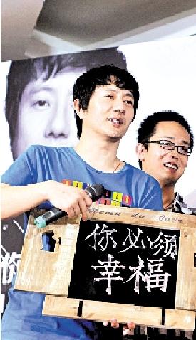 鄭鈞收到歌迷的祝福。本報記者 胡雪柏 攝