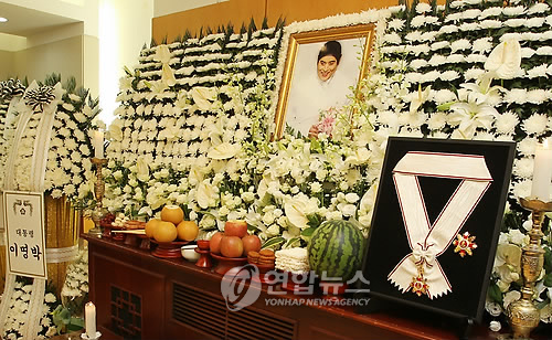 韓國總統(tǒng)室室長任太熙于13日下午5時許前往設(shè)置在首爾蓮建洞首爾大學(xué)醫(yī)院的靈堂,代替李明博總統(tǒng)向故人授予了金冠文化勛章。
