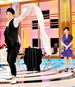 對(duì)于當(dāng)場(chǎng)被夸講話溫柔,外表看不出強(qiáng)勢(shì),更被懷疑從沒(méi)出口罵人,韓庚立馬否認(rèn)說(shuō):“當(dāng)然有!男孩子都罵過(guò)人!”現(xiàn)場(chǎng)張小燕更故意踩臟韓庚的白皮鞋,想逼他罵人,但是韓庚在大聲喊了幾聲后竟蹲下擦鞋,溫柔的說(shuō):“(鞋子)臟了!”讓張小燕相當(dāng)失望。