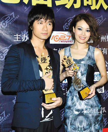 當(dāng)晚最大冷門是陳奕迅竟一個獎都沒有拿到,倒是古巨基獲得“勁歌王”大獎。古巨基獻(xiàn)唱《地球很危險》時表現(xiàn)疲憊,他解釋最近一直在北京拍攝央視電視劇《青春旋律》,剛下飛機(jī)就直接趕到佛山,一路勞碌,眼睛都是腫的!案杳缘臒崆槭墙o我的最好的鼓勵。我的新國語專輯12月份左右便會跟歌迷見面了。”