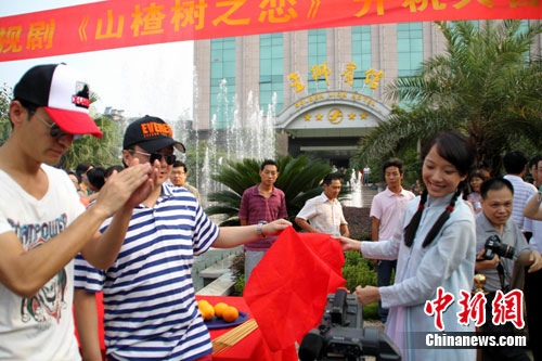 中新網(wǎng)宜昌8月28日電 (劉良偉 上官純青 李琳)28日上午,電視劇《山楂樹(shù)之戀》在湖北宜昌市夷陵區(qū)舉行了簡(jiǎn)短的開(kāi)機(jī)儀式,該劇大部分場(chǎng)景將在故事原發(fā)地宜昌夷陵區(qū)拍攝。