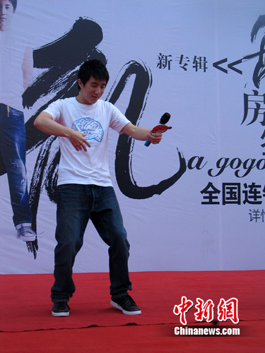 中新網(wǎng)西安8月28日電(記者 冽瑋)8月28日下午,香港藝人房祖名帶著個(gè)人全新創(chuàng)作專輯《亂》來到西安,粉絲們?yōu)榱四慷门枷竦娘L(fēng)采,早早等候在簽售現(xiàn)場。房祖名在臺(tái)上大“秀”邁克·杰克遜的舞蹈,也令眾多粉絲大飽眼福。