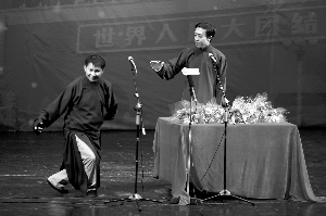 往常在德云社“倒二”演出的何云偉、李菁,終于輪到壓軸演出。本報(bào)記者 王嘉寧 攝