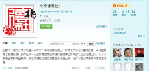 德云社在微博指出:“因德云社演員分成三隊且分別在三個不同的劇場演出,故每天節(jié)目無法隨時改變。今日因有德云社演員自行安排至張一元劇場演出并沒有提前通知演出安排部門及當日演出隊。為了不影響正常的演出秩序,所以沒用把該演員安排到今日演出中!