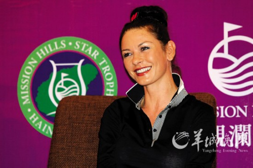 在昨日出席比賽的眾多明星中,好萊塢女星凱瑟琳·澤塔·瓊斯無疑是最受媒體關(guān)注的一個。瓊斯與丈夫邁克·道格拉斯都是高爾夫球達人,對于兩人的球技較量,凱瑟琳謙虛地說:“丈夫比我打得好多了,不過我打球的姿勢比他好看!”