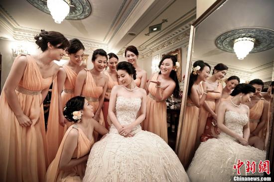 11月8日,郭晶晶出嫁前的喜悅。當(dāng)天,霍啟剛和郭晶晶正式的婚禮儀式在香港沙宣道霍家大宅舉行。超過(guò)百位嘉賓,包括夫妻雙方的家庭成員,伴娘和伴郎,出席并見(jiàn)證了婚姻的儀式。中新社發(fā) 通聯(lián) 攝