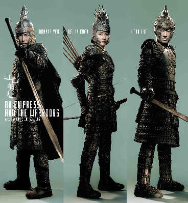 由程小東執(zhí)導(dǎo),甄子丹、陳慧琳、黎明主演的古裝動作電影《江山美人》暫定明年3月于內(nèi)地和香港同步公映。今日在美國洛杉磯全球最大的電影交易市場上,監(jiān)制鐘珍及出品方代表于冬將親自揭曉《江山美人》的五款海報。可能是因為起用了《黃金甲》的美術(shù)指導(dǎo)奚仲文,甄子丹、陳慧琳和黎明的盔甲造型與周杰倫的“杰王子”形象很接近,不同的是,《江山美人》中的人物穿的是“紫金盔甲”。