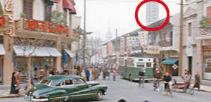 幕后:為了完整重現(xiàn)《色,戒》中30年代場景,李安不惜花了3000萬人民幣在上海搭建了一條完整的“南京西路”,道路兩旁盡是2、3層樓的建筑,共蓋了大小180家商店。據(jù)悉,原著小說中,曾出現(xiàn)店家的陳年照片,李安就根據(jù)這些,再對照真實史料,仔細(xì)考究搭建,就連櫥窗內(nèi)的商品也以真品放置。李安對美工的要求幾乎到了苛刻的地步,連一只杯子都要和當(dāng)年一模一樣。但百密一疏,背景中的高樓影子,本應(yīng)該在后期制作中用電腦刪去,卻疏忽了。
