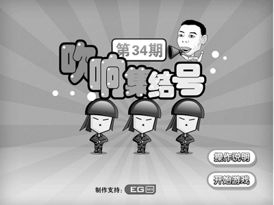 記者發(fā)現(xiàn),目前有數(shù)十萬網(wǎng)友參與過互動惡搞《集結(jié)號》,其惡搞方式就是拿馮小剛開涮,游戲稱名導(dǎo)馮小剛攜年度大片《集結(jié)號》再戰(zhàn)內(nèi)地電影市場,但當(dāng)今觀眾的欣賞水平越來越高,要求也越來越高,導(dǎo)演面臨的壓力很大。究竟《集結(jié)號》能否吹響,請你助他一臂之力。而游戲規(guī)則就是:點擊鼠標(biāo)左鍵擊斃沖上陣地的群眾演員,同時注意不要打中摻雜在其中的明星演員。如果讓敵人沖上陣地或是誤殺一定數(shù)量的明星演員游戲即失敗,參與者的任務(wù)就是,請堅守陣地直至集結(jié)號吹響。