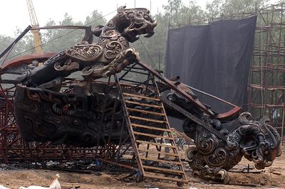 據(jù)北京媒體的報道,在9日上午,有媒體抵達(dá)拍攝現(xiàn)場時,發(fā)現(xiàn)場地中央一艘長約20米的仿古戰(zhàn)船已被燒得只剩下骨架,而另一艘比較小的戰(zhàn)船也出現(xiàn)了破損。根據(jù)事后了解,當(dāng)天的補拍是由《赤壁》的武術(shù)指導(dǎo)之一,曾在《喋血街頭》、《辣手神探》等影片中擔(dān)任吳宇森副導(dǎo)的梁柏堅執(zhí)導(dǎo)拍攝。有香港媒體在火災(zāi)發(fā)生后致電梁柏堅,希望了解事件發(fā)生的經(jīng)過。然而,梁柏堅直接回答“對不起,我不能說什么”,拒絕了采訪。