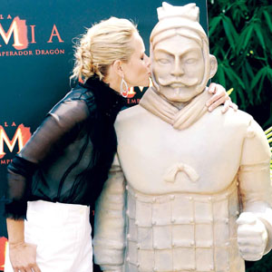 由李連杰、楊紫瓊等眾多華人影星參演的《木乃伊3:龍帝之墓》將于下周四(31日)在我國(guó)香港地區(qū)、新加坡和韓國(guó)上映,但內(nèi)地觀眾則要到8月底才能有望一睹“龍帝”模樣。不過這并不影響該片在全球刮起一股“中國(guó)風(fēng)”。本周一,《木乃伊3》主演布蘭登·弗萊澤、瑪麗亞·貝羅與兵馬俑出現(xiàn)在西班牙馬德里時(shí),再度燃起人們對(duì)兵馬俑的好奇。