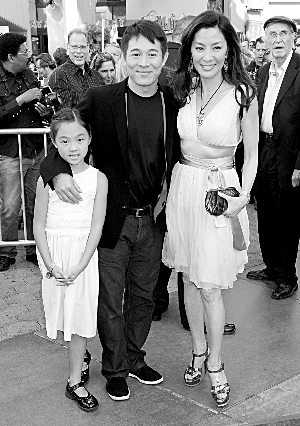 前日,李連杰身著功夫衫出現(xiàn)在首映式上,腳下穿一雙千層底布鞋,將中國特色發(fā)揮到極致。楊紫瓊則是一襲黃裙亮相,最引人注目的當(dāng)屬梁洛施。英皇控告環(huán)球,禁止梁洛施參與宣傳,但是英皇敗訴。梁洛施在官司之后首次高調(diào)亮相,套著黑色長裙,一身貴婦人的打扮贏得了眾多的注意力。