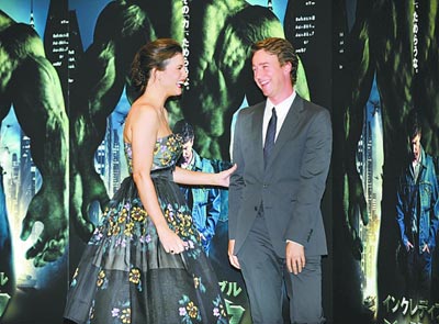 昨日,電影《神奇綠巨人》東京首映,女星麗芙·泰勒身穿炫花蓬蓬裙與男星愛德華·諾頓一起現(xiàn)身。