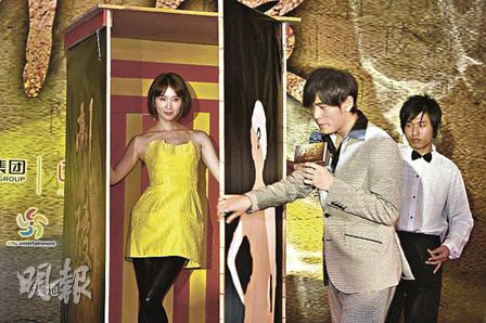 據(jù)香港《明報(bào)》報(bào)道,周杰倫在記者會(huì)上化身魔術(shù)師,變出女主角林志玲。有質(zhì)疑林志玲比周杰倫高,穿上平底鞋的林志玲讓大家來(lái)量度高度,原來(lái)周杰倫比林志玲高0.5公分,她笑說(shuō):“周杰倫是我拍電影以來(lái)最高的男主角。”兩人互賣口乖,指對(duì)方是心目中最好條件的異性,林志玲形容周杰倫是才子,孝順之余更會(huì)變魔術(shù),所以很期待合作;而周杰倫亦表示很期待與這位幾乎是所有男人的夢(mèng)中情人合作,但他唯一要求女主角不能比他高,“幸好我比林志玲高”。