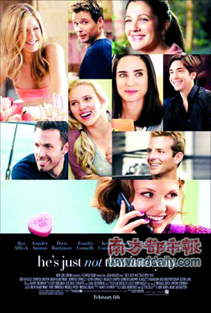 《他沒那么喜歡你》由斯嘉麗·約翰遜、珍妮弗·安妮斯頓、德魯·巴里摩爾、賈斯汀·朗、本·阿弗萊克、詹妮弗·康納利、賈斯汀·朗等一大堆明星主演。該片改編自由《欲望都市》的顧問和編劇兩人共同創(chuàng)作的同名小說,影片幫女同胞們更聰明地獲得愛情。和珍妮弗·安妮斯頓之前大賣的《馬利與我》類似,《他沒那么喜歡你》也沒獲得影評人的好臉色。