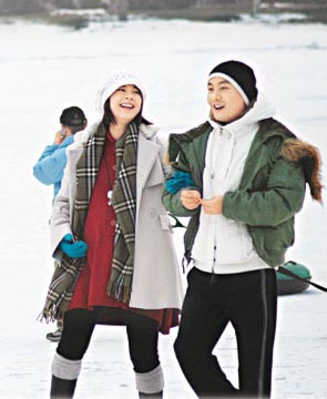 剛完成劇集《黃飛鴻》的張衛(wèi)健,趕回北京陪情人及未出世的BB過冬,兩人見天朗氣清,穿上厚厚的御寒衣服牽手現(xiàn)身北京朝陽公園。只見懷了七個(gè)月身孕、略為發(fā)福的張茜,穿著短大衣和長Boot,戴上毛線帽、圍巾和手套,薄施脂粉下仍散發(fā)著幸福艷光。一向細(xì)心的張衛(wèi)健牽著張茜,安排她坐在場邊,隨即進(jìn)場大顯身手,并不時(shí)調(diào)皮搗蛋,故意跌倒逗她開心。至于坐在場外的張茜,不時(shí)撫摸肚皮,似向腹中寶寶說悄悄話,十分溫馨,而她望著張衛(wèi)健的一舉一動時(shí),臉上泛著幸福的微笑。