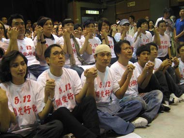 中新網(wǎng)5月16日電 中國(guó)四川省汶川縣遭遇特大地震災(zāi)害,震動(dòng)波及半個(gè)亞洲,數(shù)以萬(wàn)計(jì)民眾罹難,災(zāi)情牽動(dòng)神州大地, 牽動(dòng)全世界關(guān)注的目光。香港演藝人協(xié)會(huì)、香港無(wú)線電視、亞洲電視、香港電臺(tái)、鳳凰衛(wèi)視、新城電臺(tái)六間機(jī)構(gòu)共同組織“一方有難,八方支持”行動(dòng),香港媒體及演藝界人士積極響應(yīng),15日深夜,兩百多位歌、影、視藝人及媒體從業(yè)人員齊聚香港電臺(tái),參與大合唱錄音,為四川地震災(zāi)民祈福、加油、打氣。