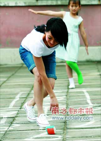 組圖:周迅拍攝公益片 與小演員玩"跳房子"(2)