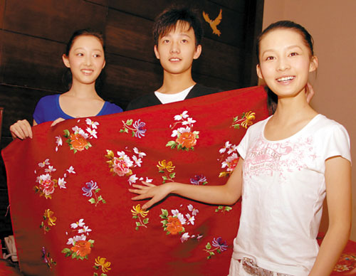 “絕世寶貝!”李小婉捧著為賈母、王熙鳳和王夫人三大角色定制的12幅蘇繡,跟記者說(shuō),“你們算好運(yùn)了,李少紅導(dǎo)演還沒(méi)見(jiàn)到,她昨天還很激動(dòng)地打電話問(wèn)我:‘看到咱寶貝了沒(méi)?’”她說(shuō),這些蘇繡是蘇州顧文霞大師工作室的16位繡娘歷時(shí)4個(gè)多月手工繡制的,前天剛剛完工!八姆掀闯梢患路,全是金線和銀線繡的,幅幅都價(jià)值連城。”