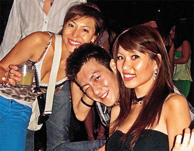 喝到面紅耳赤的陳冠希被夾在一群辣妹中間。