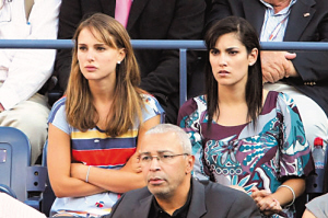 娜塔莉·波特曼(左)神情緊張地觀看美網(wǎng)決賽。