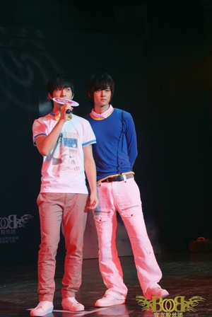 一個號稱鐵桿粉絲的上臺,給BOBO這對雙子帶來了不小的尷尬。這個粉絲上臺后熱情的表示她是付辛博的忠實“鐵粉”,執(zhí)意要他簽名,卻走到了井柏然的面前并索要擁抱。這時在臺下的600名粉絲轟然大笑,原來這也是主辦方估計安排的一場整蠱環(huán)節(jié),最后還亮出“你們被整了”筆記本合影留念。