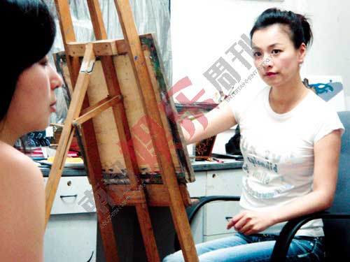 很快張庭就成為上師大美院的正式研究生,她那一屆只有她一個(gè)學(xué)生,專業(yè)是裝飾設(shè)計(jì),不過素描油畫是必修課。她常常一個(gè)人在畫室里畫人體模特,無(wú)人打擾,司機(jī)接送,滿身名牌,真的是這個(gè)學(xué)校里最高端的學(xué)生了。張庭每周三四天會(huì)定時(shí)練畫,8個(gè)小時(shí)不間斷,“表演是一種藝術(shù),它兼具理性和感性,我覺得美術(shù)跟表演是相通的。”